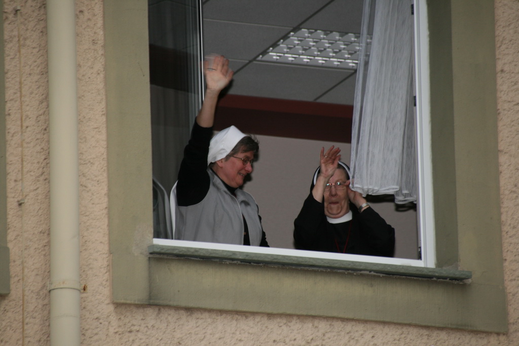 Gemeinsam machte man sich auf dem Rückweg zur Beketalhalle. Vorbei am Missionshaus der „Schwestern vom kostbaren Blut“, die sich schon sichtlich auf die königliche Nachbarschaft freuen.