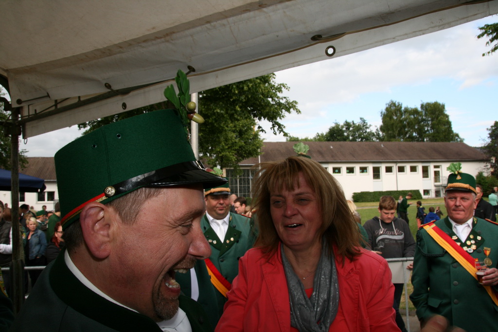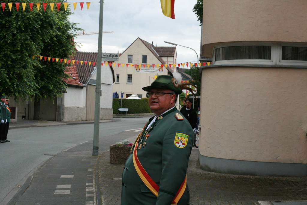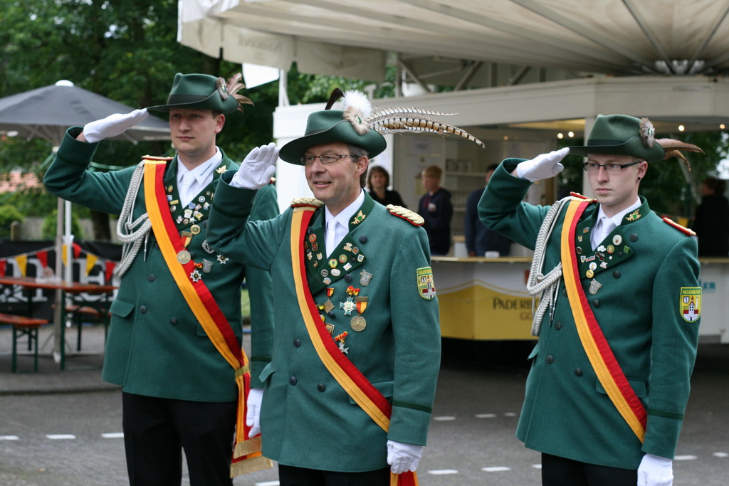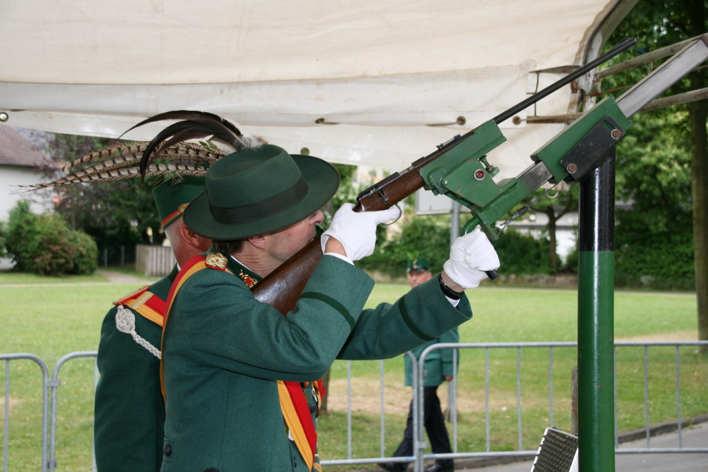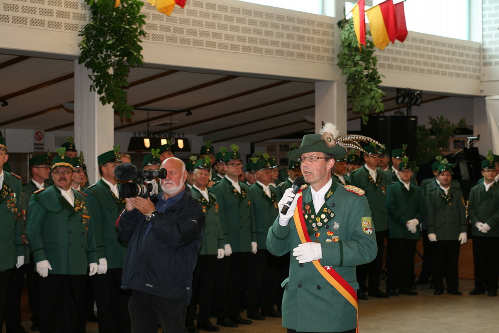 Pünktlich um 14:30 Uhr konnte Oberstleutnant Gerald Rüngeler die Schützen am Antreteplatz bei der Gaststätte „Zur Jägerlust“ begrüßen und bei seiner Meldung an Oberst Norbert Franke „volles Haus“ angeben.