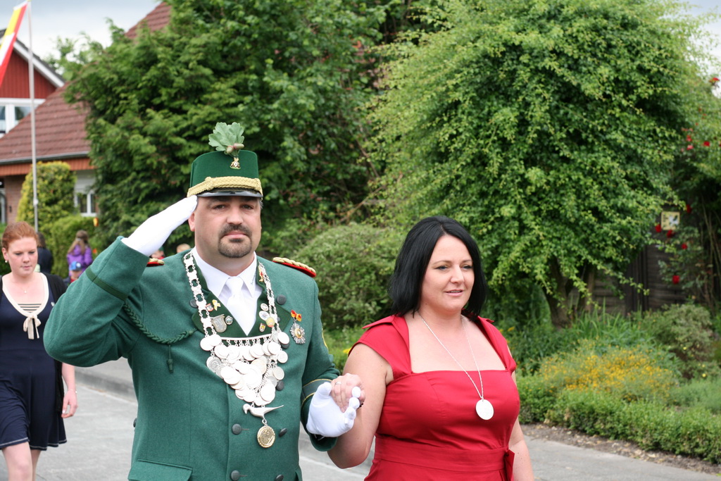 machte sich der Zug auf den Weg, den Vorjahreskönig Sven Kielmann, seine Königin Petra, sowie den Hofstaat abzuholen und anschließend zur Beketalhalle zu begleiten.