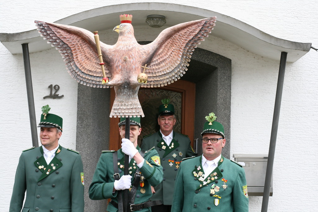 Auf dem Weg dorthin wurden beim „Vogelbauer“ Hubert Spier die Schützenadler abgeholt. Für Hubert Spier war dies bereits der 50. Schützenvogel, den er für den Heimatschutzverein fertigstellen konnte.