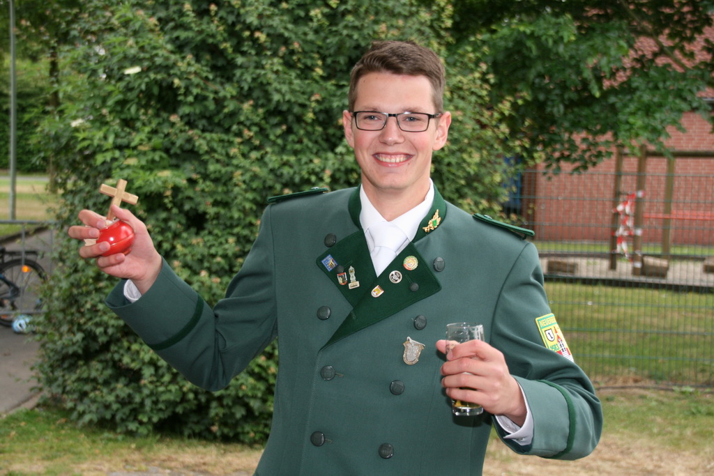Mit seinem ersten Ehrenschuss gelang es dem Vorjahreskönig Sebastian Aust die Krone abzuschießen und somit neuer Jungschützen-Kronprinz zu werden.