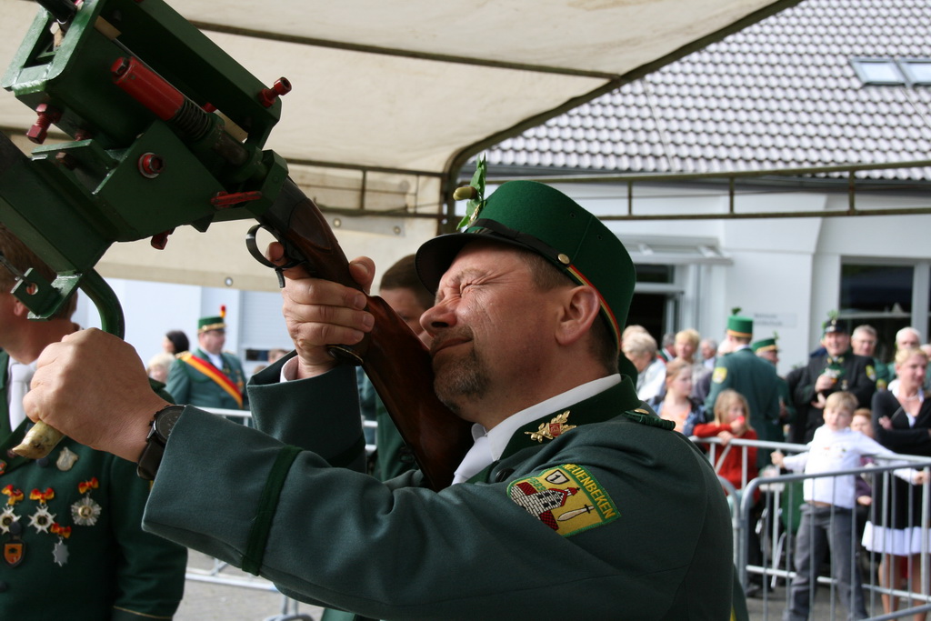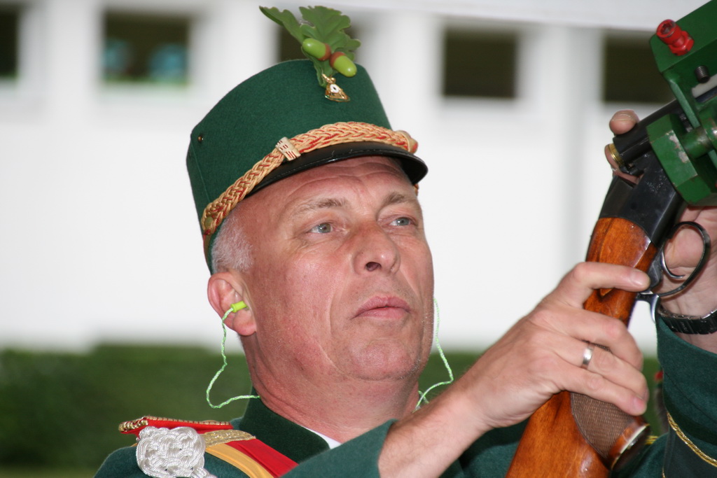 Auch hier durfte Vorjahreskönig Sven Kielmann die ersten Ehrenschüsse abgeben, gefolgt von Oberst Norbert Franke und Pastor Markus Stadermann.