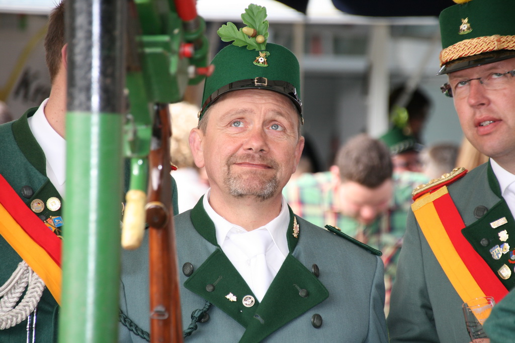 Bereits mit dem 25. Schuss fiel das Zepter. Fähnrich Heinz-Dieter Wolf konnte es dem Schützenadler entreißen und ist nun neuer Zepterprinz.