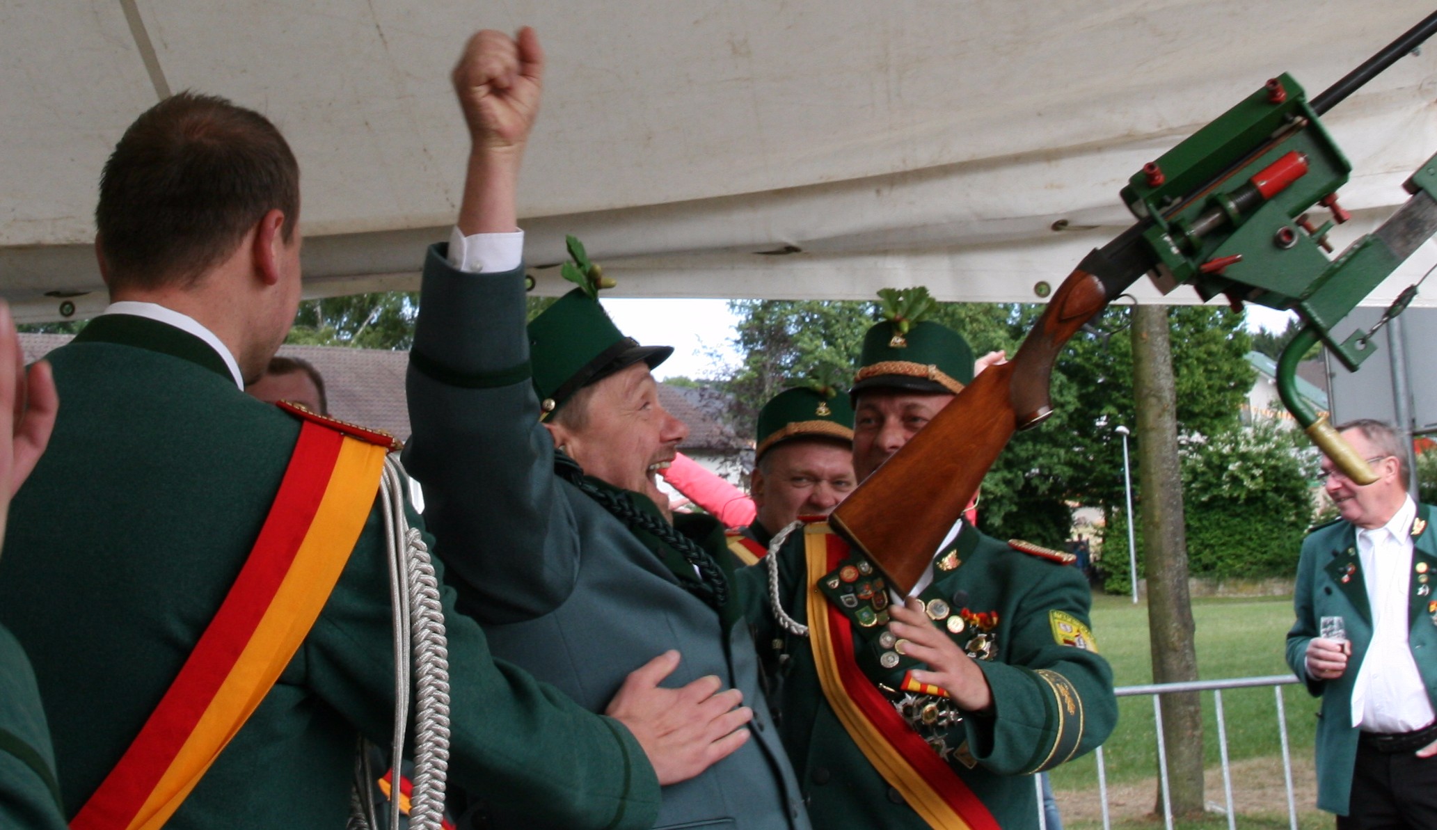 Sichtlich gelöst und gerührt, aber vermutlich immer noch voller Anspannung, konnte König Markus die zahlreichen Glückwünsche noch direkt am Gewehr entgegen nehmen.