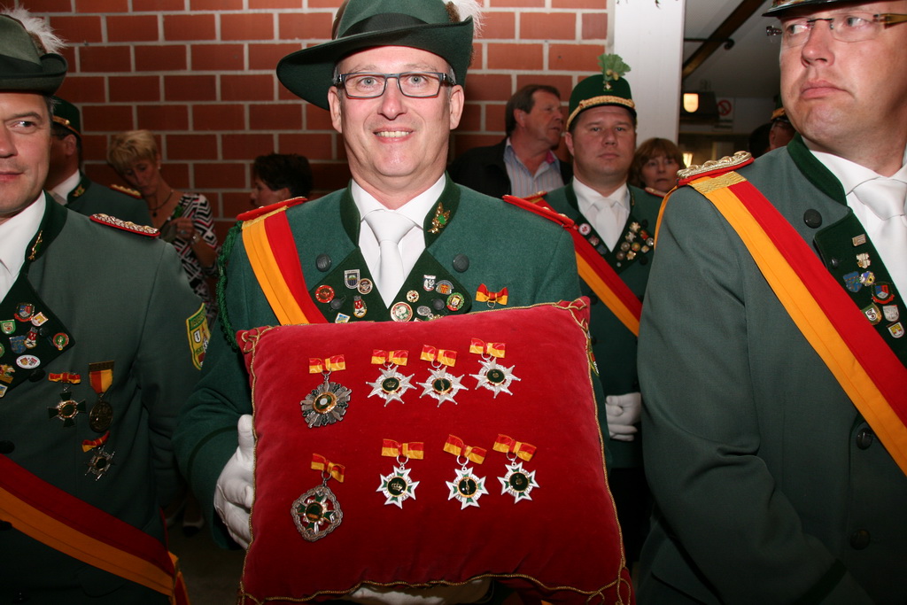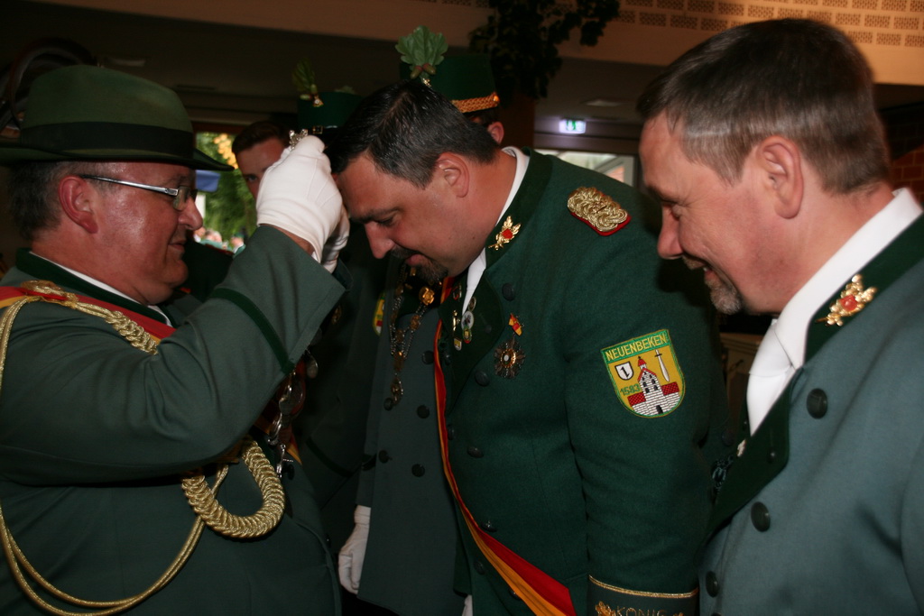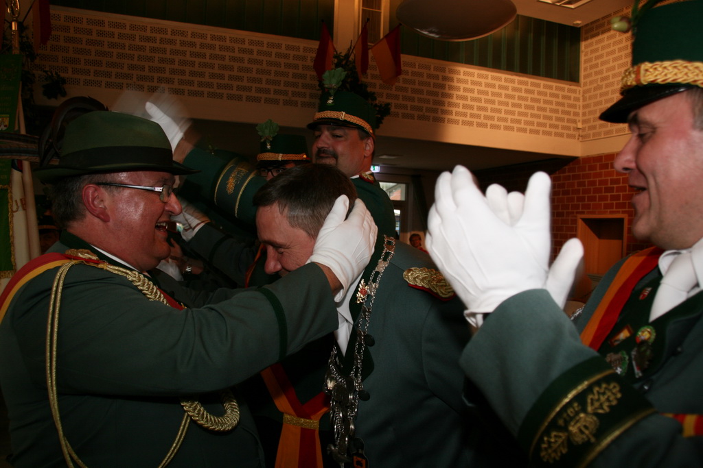 Auch bei der Proklamation von König Markus Gerken und der damit verbundenen „Ketten-Übergabe“ waren feuchte Augen dabei. Oberstleutnant Rüngeler dankte dem scheidenden König, Sven Kielmann, für seinen Einsatz und sein Engagement im abgelaufenen Regentenjahr und lobte seine Tatkräftigkeit.