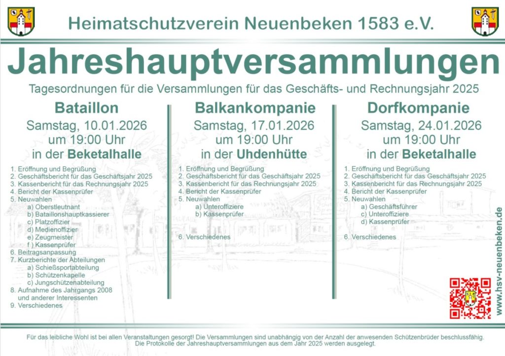 Allgemein Jahreshauptversammlungen im Januar 2026 13. Dezember 2025 Holger Röhren Plakat Jahreshauptversammlungen 2026_final Zum Vergrößern auf das Plakat klicken!
