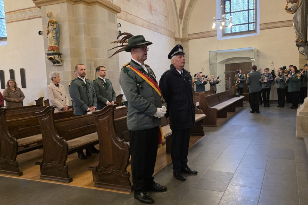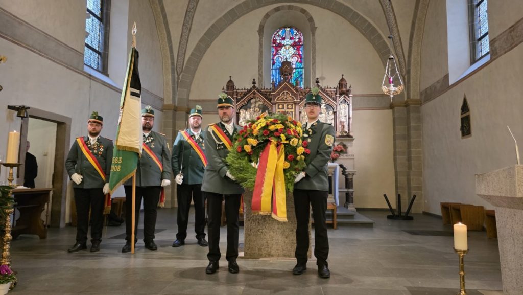Wetterbedingt mussten auch in diesem Jahr die Ansprachen von Frank Beineke von der Freiwilligen Feuerwehr und Schützenoberst Dirk Claes, zum Gedenken an die Gefallenen und Opfer der beiden Weltkriege, in der Kirche durchgeführt werden. Die Gedenkfeier wurde musikalisch untermalt von der Schützenkapelle des Heimatschutzvereins.